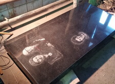 После изготовления плиты, мы нанесли портреты на камень.