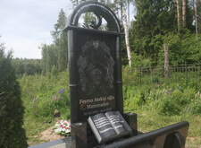 Предварительно станком делается портрет лица усопшего, остальная гравировка – ручная работа. В последнем кадре из подборки представлено ростовое изображение, плита расположена вертикально.