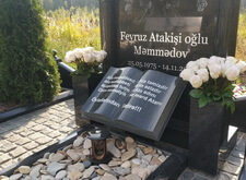 Собираем лавочку, устанавливаем её напротив надгробья. Цветник у подножья мемориальной стелы наполняем светлыми камнями. Под полукруглую арку памятника укрепляем вырезанную из гранита фигуру полумесяца.